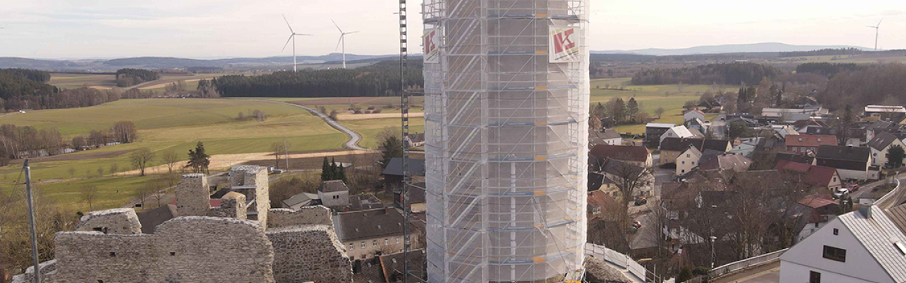 Einrüstungen auf den Zentimeter genauWie wertvoll und wichtig eine durchgängig digitale Gerüstplanung sein kann, zeigt ein aktuelles Projekt des staatlichen Bauamts Bayreuth, das noch in diesem Jahr abgeschlossen werden wird. Die historische Burgruine Thierstein wurde in drei Bauabschnitten umfassend saniert. Hier erhielten die Gerüstbauer aus Bayreuth umfassende Daten in Form von Punktwolken, die mit Drohnen und Laserscannern aufgemessen wurden.Diese haben sie anschließend in das Programm von SOFTTECH eingelesen und die Gerüstplanung entsprechend eingearbeitet.